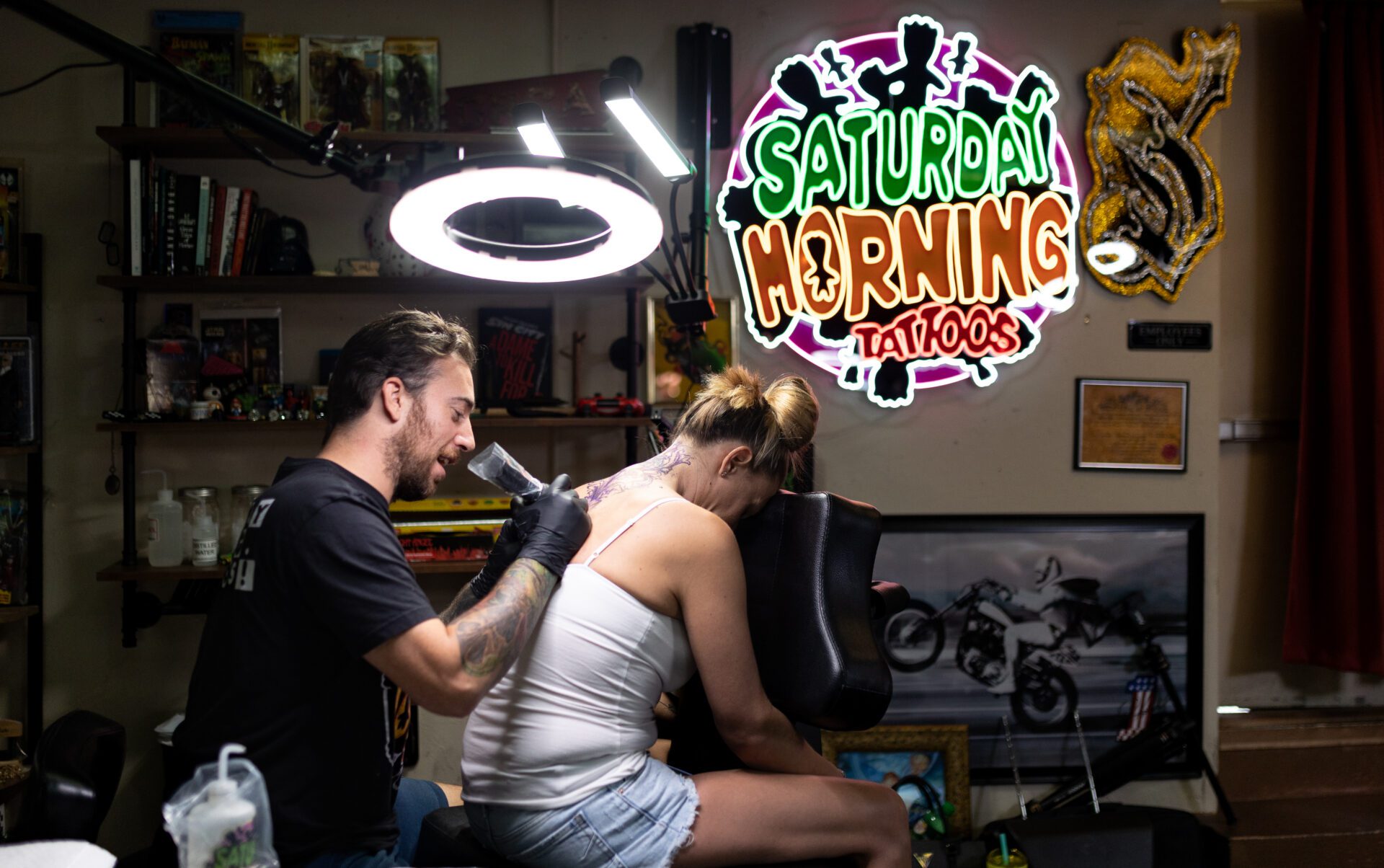 Sam is a Florida native, born and raised on the Space Coast. She grew up with a love for art, and furthered this passion after graduating high school. She left Brevard County and obtained a Bachelor’s Degree in Fine Arts from the University of Florida in 2014. While studying art at the university, she incorporated tattooing in her work and decided to pursue this interest after living in New York City and Colorado. She returned to Florida with her son and has been tattooing since 2018. Whether it’s vibrant color work, intricate black and grey designs, or bold traditional pieces, Sam’s tattoos reflect her passion, creativity, and dedication to her craft.